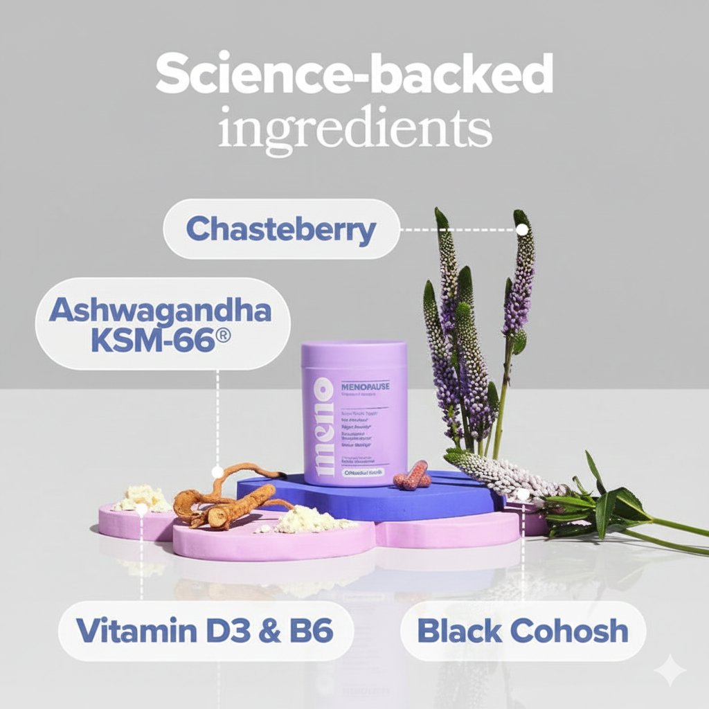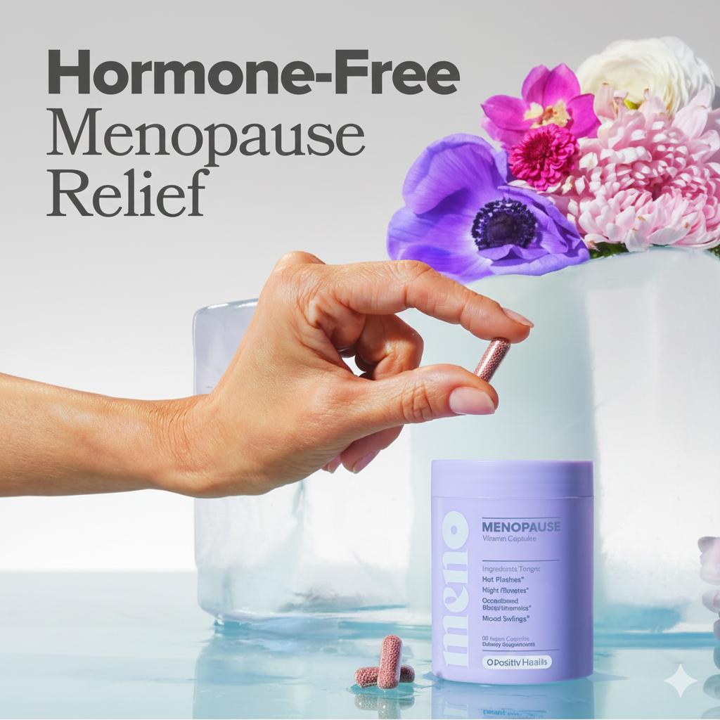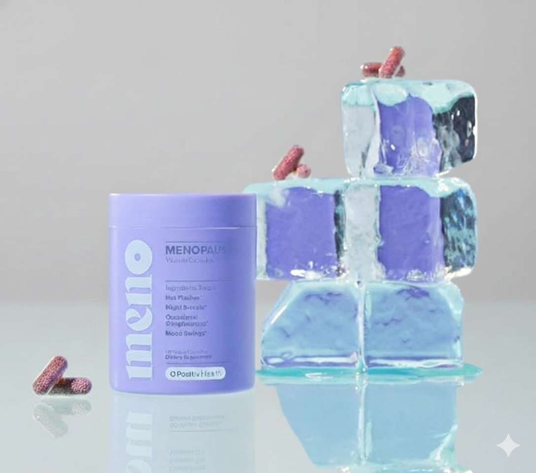 Support your menopausal journey with O Positiv MENO Vitamins. These daily hormone-free supplements are designed to help relieve hot flashes, night sweats, occasional sleeplessness, and mood swings, utilizing science-backed ingredients.